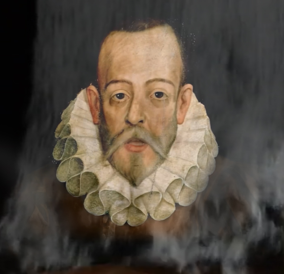Miguel de Cervantes himself, the famous Spanish author, appears as a ghost to tell us about the battle in which he was wounded and later left his military career to devote himself to writing.